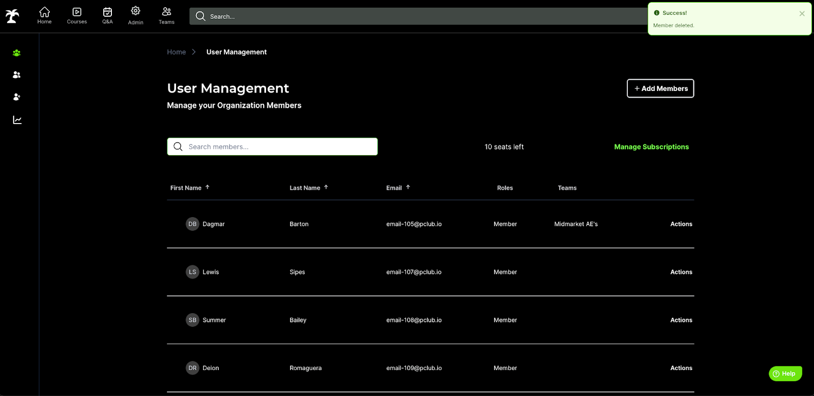From there you can view a list of all users on your account, your remaining seats, and Add Members.